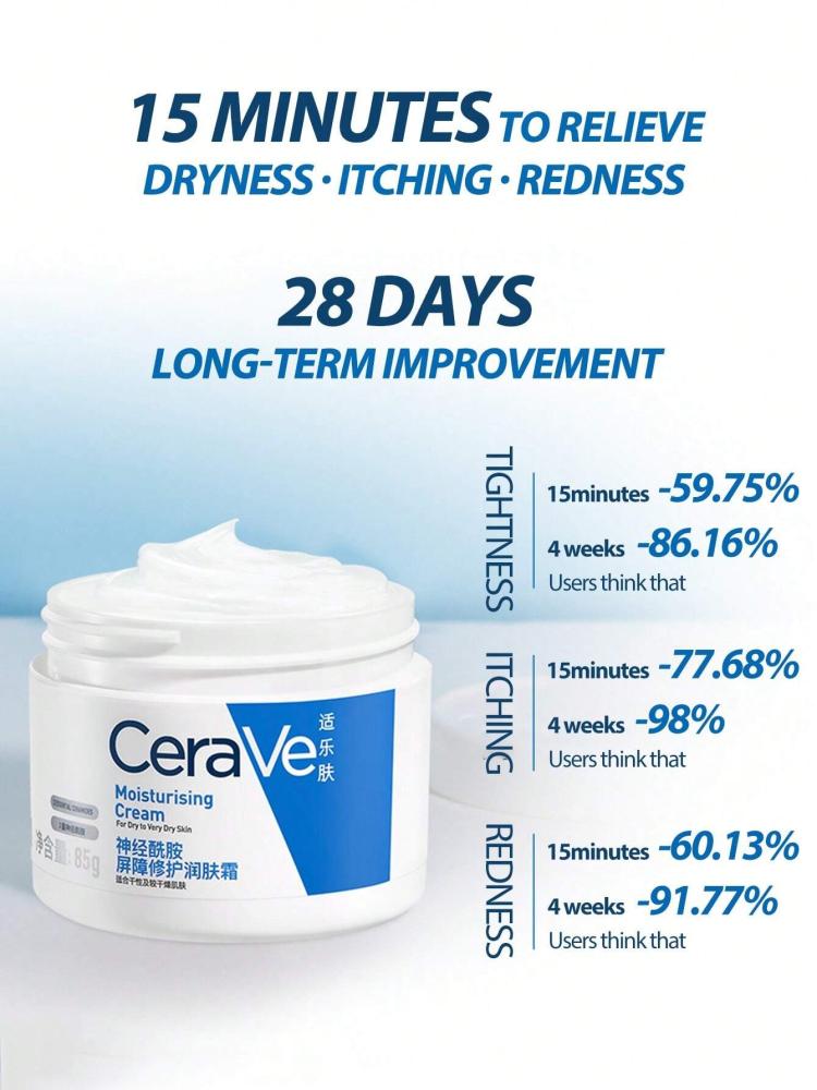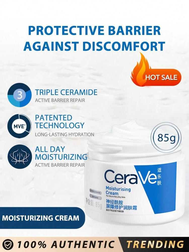 ودّعي الجفاف والتهيج مع كريم CeraVe Moisturising Cream بحجم 85 جم، المصمم خصيصًا لترطيب البشرة الجافة جدًا إلى العادية، وإصلاح الحاجز الواقي لها بفعالية.